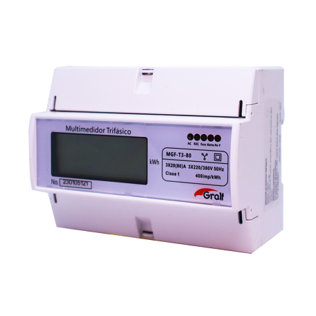 Dispositivo diseñado para monitorear y visualizar en tiempo real parámetros eléctricos clave como tensión, corriente, frecuencia, potencia activa, potencia reactiva, potencia aparente, factor de potencia, energía activa bidireccional y energía reactiva.